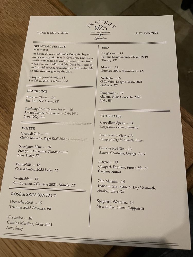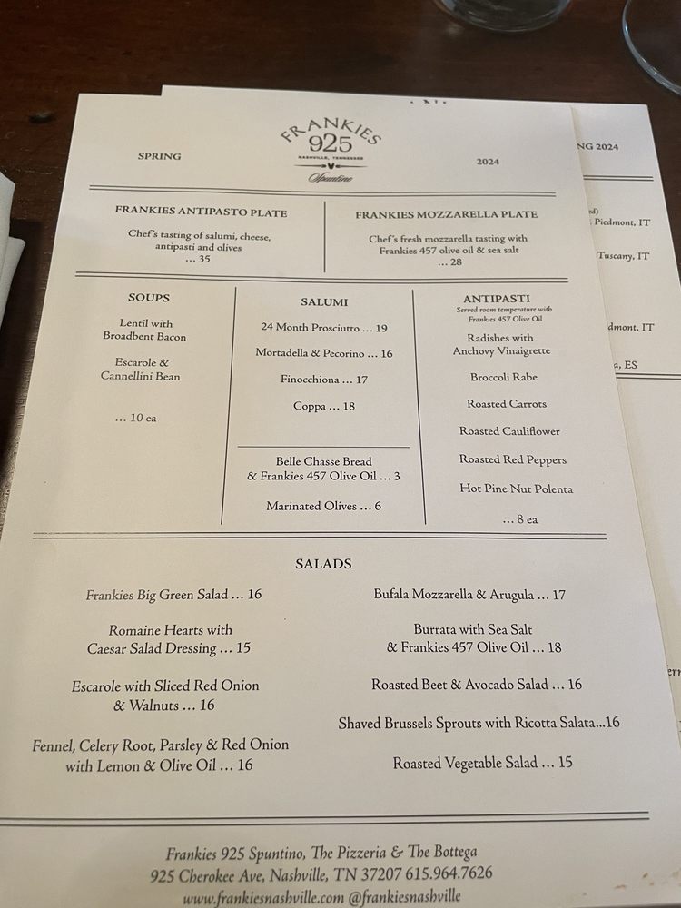 Frankies 925 Spuntino in Nashville, TN, offers a delectable mix of Italian cuisine, including top-tier pizza and Sicilian pizza that stands out. Customers rave about the fresh mozzarella appetizer, stuffed mushrooms, pastrami hash, eggs Benedict, Italian tuna on focaccia bread, and gnocchi that melts in your mouth. The Caesar salad is a standout, featuring finely shredded cheese. The service can be hit or miss, with some customers mentioning slow and pretentious service, while others praise the attentive and friendly staff. Despite occasional service issues, the food at Frankies 925 Spuntino shines through as a definite highlight. The restaurant has a cozy ambiance with candlelit tables, making it a great spot for a casual date night or gathering with friends. For a memorable dining experience with exceptional food and a welcoming atmosphere, Frankies 925 Spuntino is worth a visit.